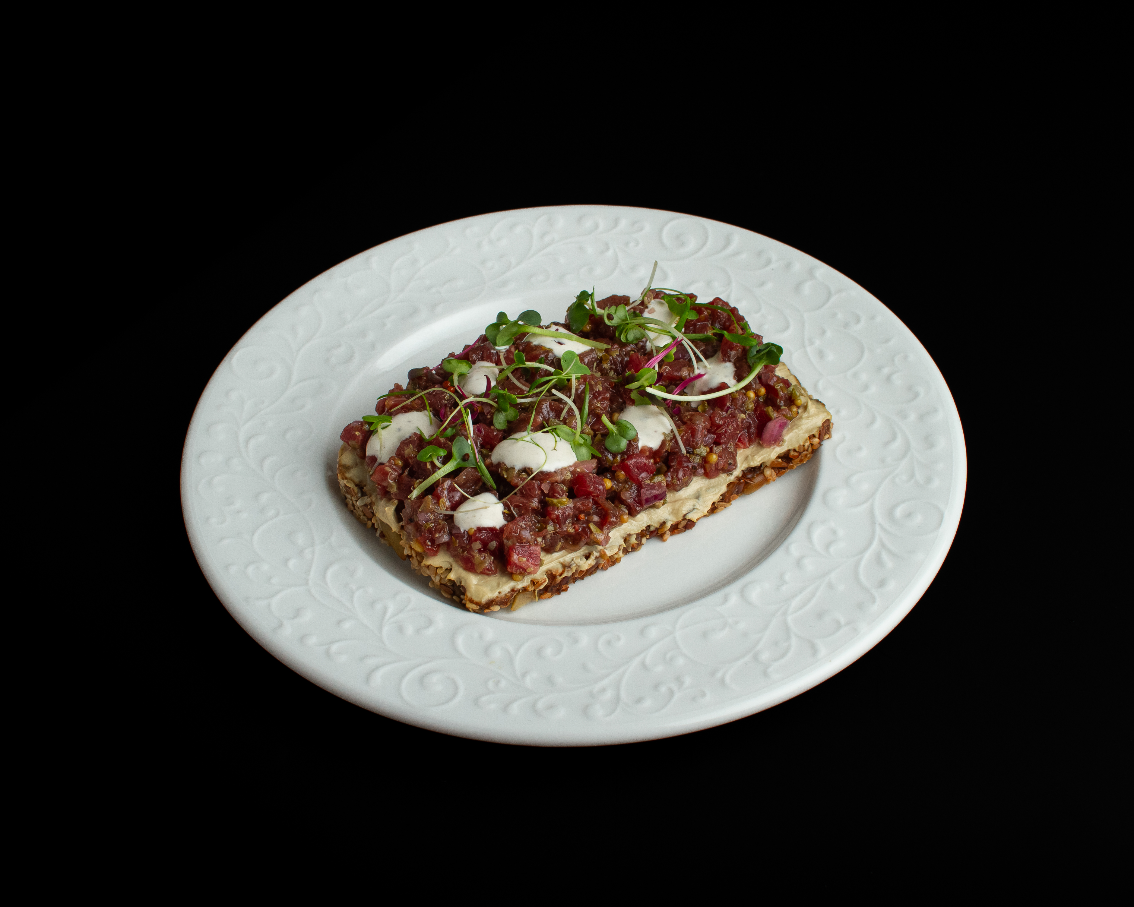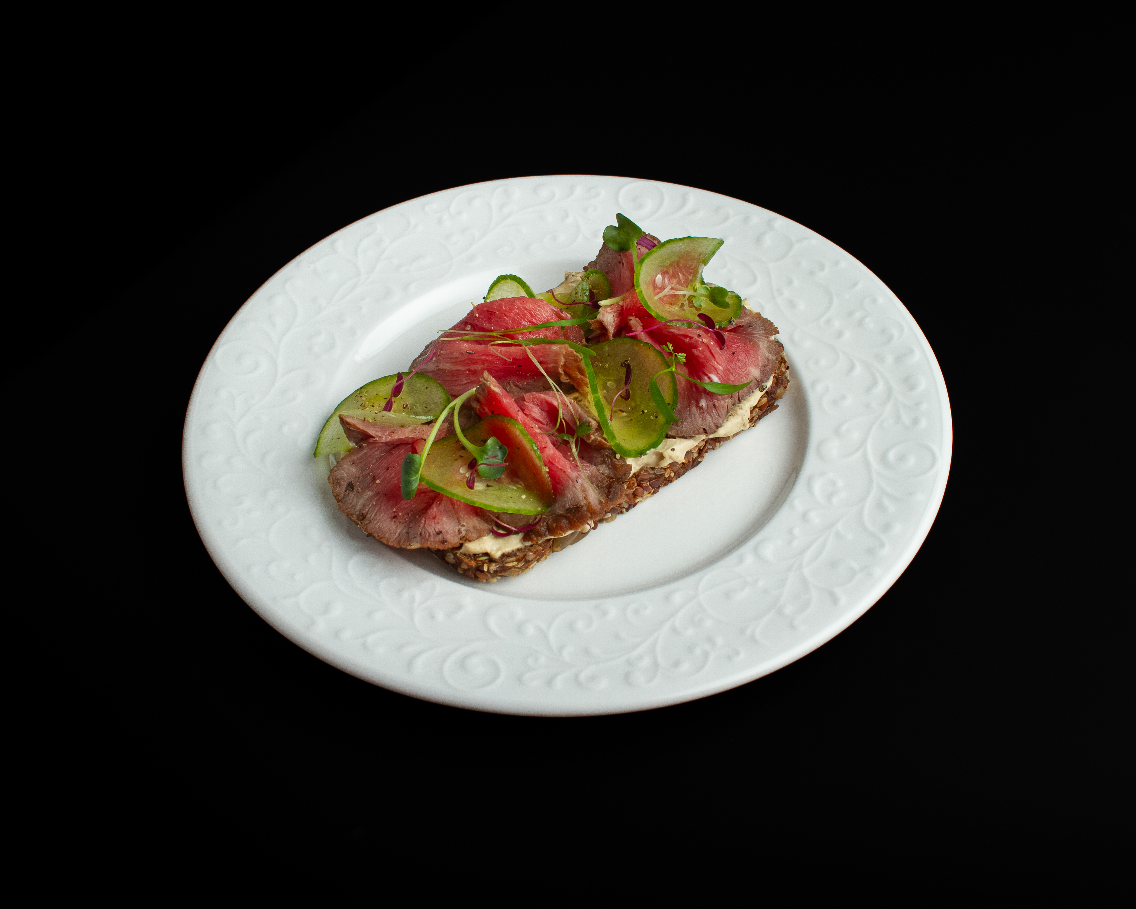 Традиционный датский бутерброд с тартар из говядины трюфельным соусом