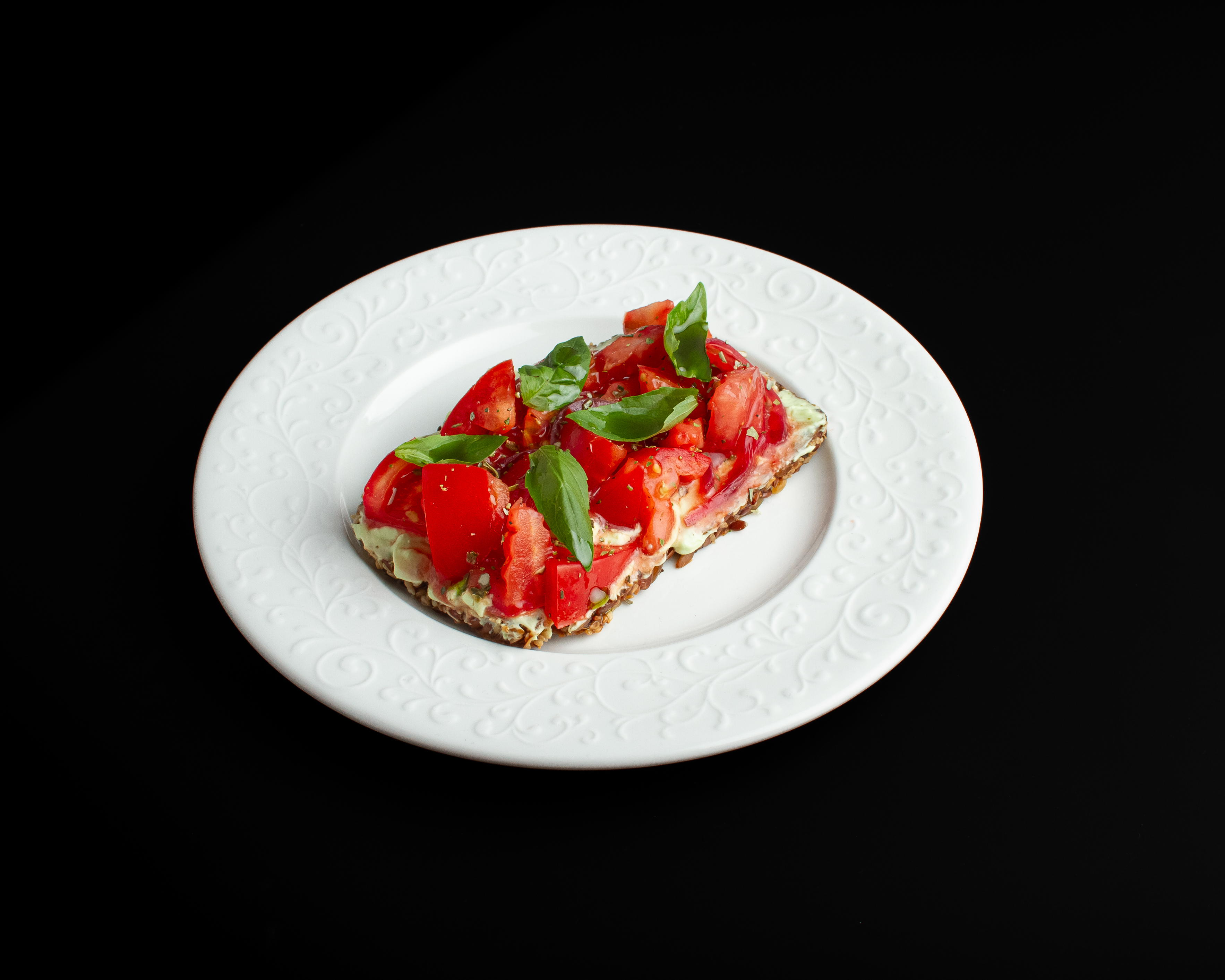Традиционный датский бутерброд с томатами и базиликом с овощным кремом