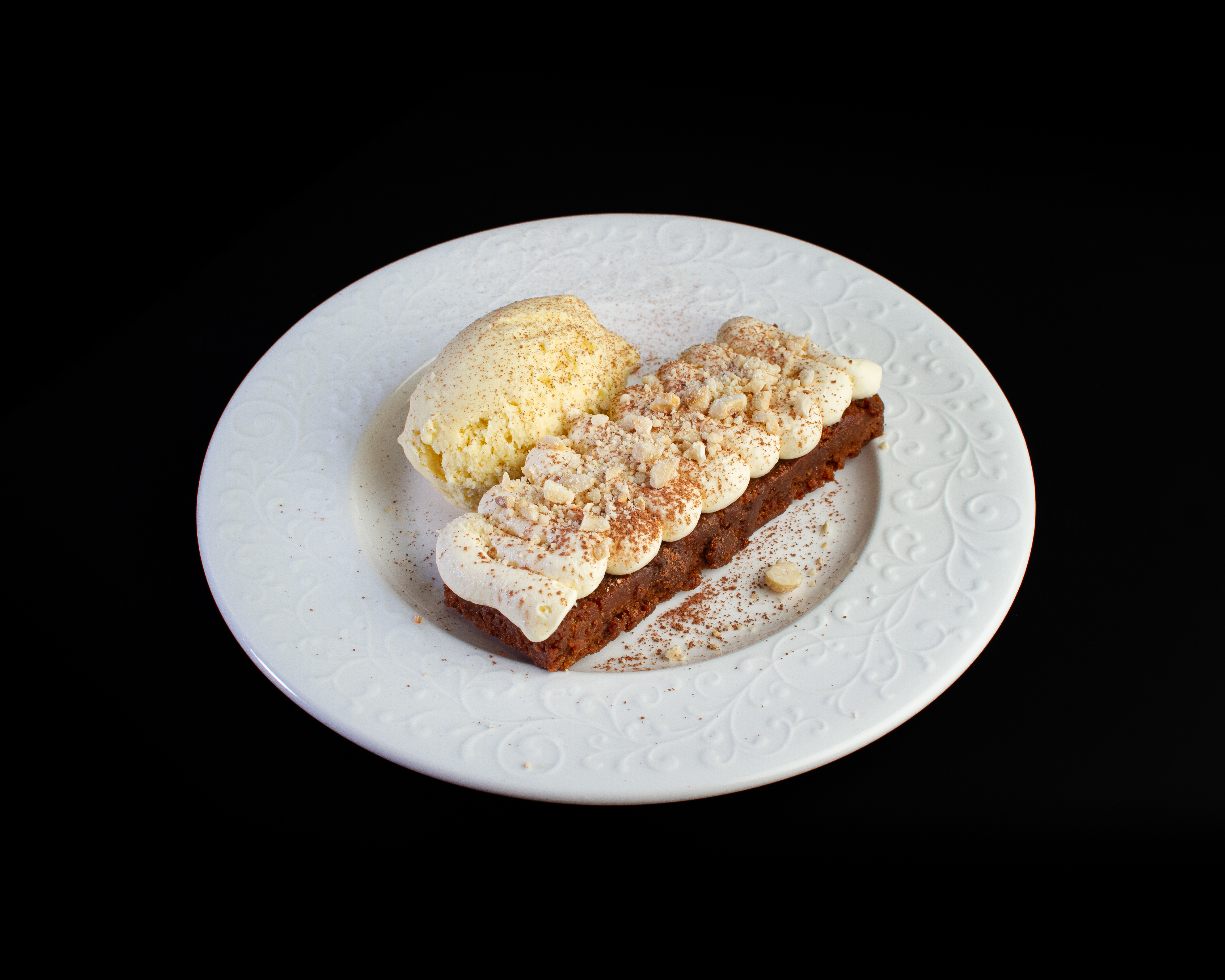 Нежный Брауни с белым маскарпоне-кремом и ванильным мороженым