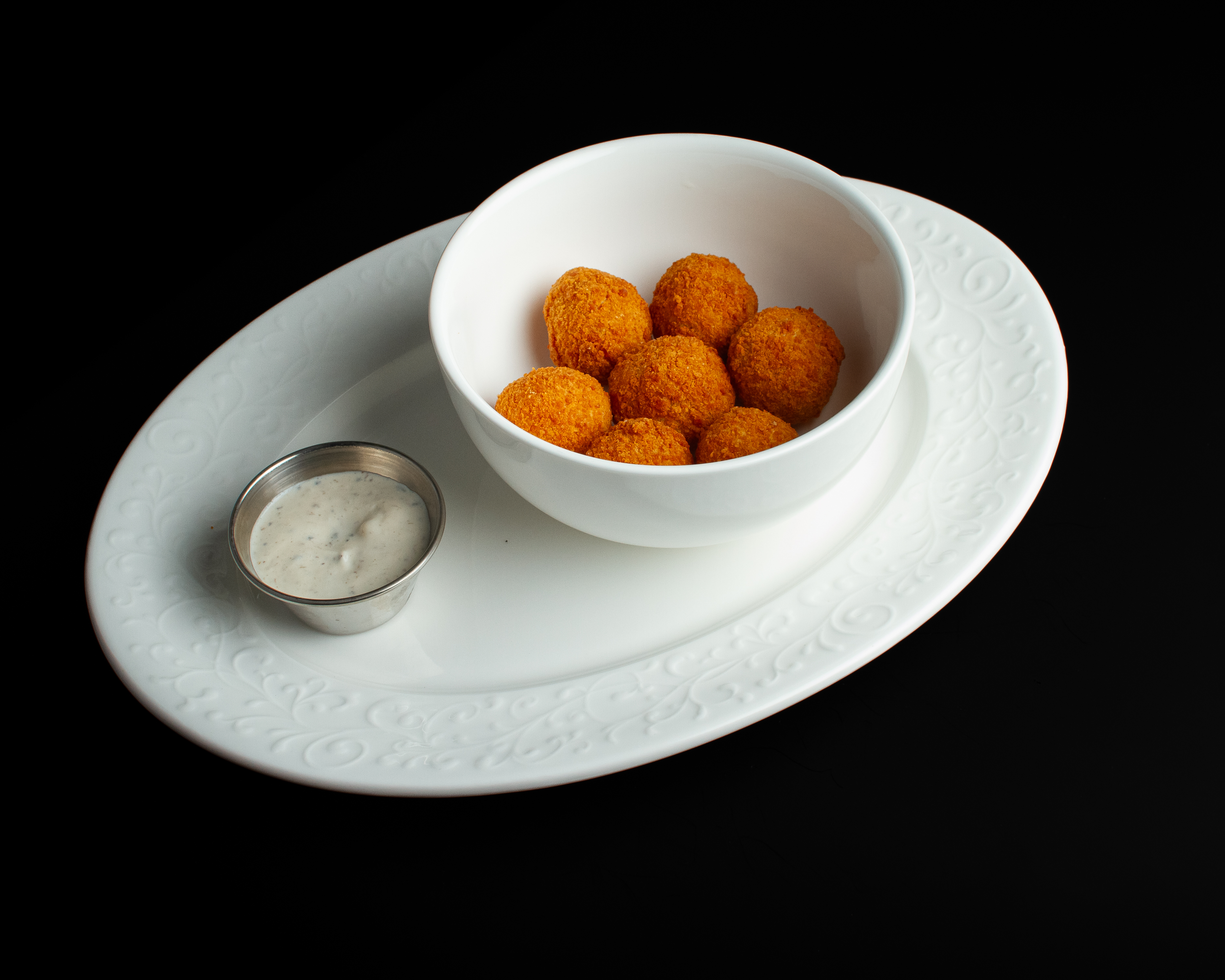 Сырные шарики из моцареллы в панировке с трюфельным соусом